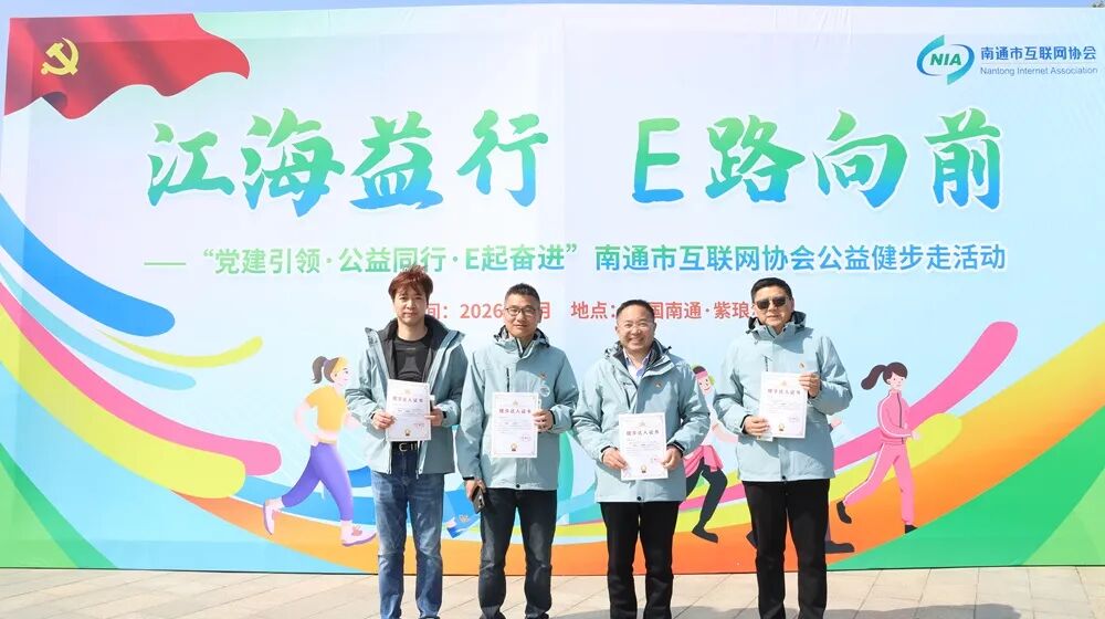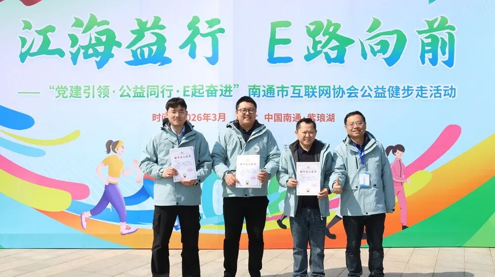 春和景明,步履铿锵。3 月 14 日,南通市互联网协会 “江海益行 E 路向前 —— 党建引领?公益同行?E 起奋进” 公益健步走活动在紫琅湖畔圆满举行。来自协会会员单位的 50余名党员代表与行业从业者齐聚一堂,以健步走的形式践行公益初心,凝聚行业合力,更以直播打卡、线上分享的互联网特色方式,传递家乡之美与公益温度,展现南通互联网人听党话、跟党走、服务社会的责任担当。